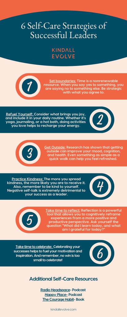 With that in mind, here are our top six self-care strategies for successful leadership.